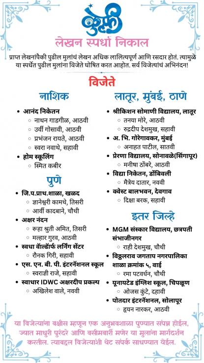कुल्फी लेखन स्पर्धा निकाल 2024